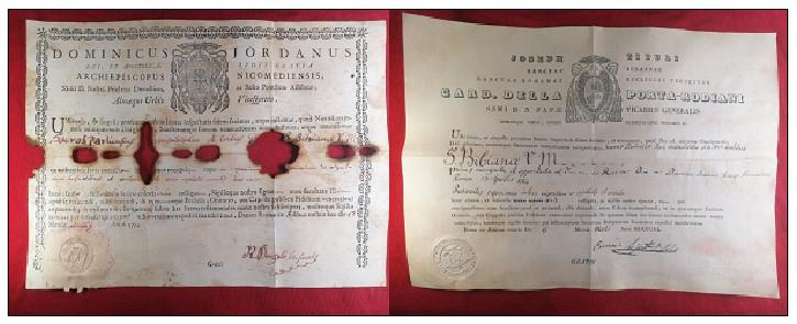 Saint Bibiana of Rome, Virgin and Martyr. In the year 363 A.D., Julian the Apostate was elevated to the position as Apronianus Governor of Rome. St. Bibiana and her family would experience the full weight of Imperial Roman “justice” imposed personally by directives from this violent tyrant. She and her sister, her sister, St. Demetria, were the daughters of deeply committed Christians, St. Flavian, a Roman knight, and St. Dafrosa, his wife. St. Bibiana’s father, Flavian, was tortured and immediately sent into exile where, shortly after his arrival from Rome, died from the wounds inflicted upon his body. Her mother, Dafrosa, was summarily executed by means of beheading. In the aftermath of their parents’ martyrdom, all of their earthly possessions were confiscated, leaving St. Bibiana and Demetria destitute. For a short period, the Pagan Roman State permitted them to remain in their family home, until they, too, would be brought to trial for their Faith. Anticipating their inevitable death at the hands of the state, both siblings spent much of their limited time on earth in fasting and prayer. Apronianus, seeing that experiencing hunger and destitution had no effect upon them, summoned the sisters to stand trial. After formally refusing to renounce her Christian Faith, St. Demetria abruptly fell dead at the feet of the tyrant. As punishment, St. Bibiana was placed in the hands of a notoriously wicked woman, Rufina, who in endeavored in vain to seduce her. Infuriated at her inability beak her will, Rufina resorted to assaulting St. Babiana with violent beatings. This action failed in yet another futile attempt at “persuasion.” Despite the horrible sufferings she endured, the young woman remained faithful to Christ Jesus. Enraged at the steadfastness of her faith, Apronianus ordered Bibiana’s death sentence to be carried out immediately. Shortly after abruptly being led away to the site of her execution, she was first stripped of her clothing and tied to a stone pillar. Once firmly secured, two alternating executioners armed employing leather whips, tied at the with ends heavy lead plummets (resembling 2 cm long dumbells), Bibina was flogged death. Two days after her murder a priest, named John, buried Bibiana’s remains next her mother and sister at their home. The house was later transformed into a church. Livonia’s All Saints Shrine at Sacred Heart Byzantine Catholic Church is greatly honored to include relics from her mandible and teeth (seen on page 1.) The earliest mention from an authentic historical authority of Saint Bibiana (Vibiana / Vivian), occurs in the "Liber Pontificalis" containing the biography of Pope Simplicius (468-483). It states that this pontiff: "consecrated a Basilica of the Holy Martyr Bibiana, which contained her body, near the 'Palatium Licinianum'." This ancient basilica dedicated to St. Babiana is still in existence. In the Western Church, she is popularly venerated as “St. Vivian.”